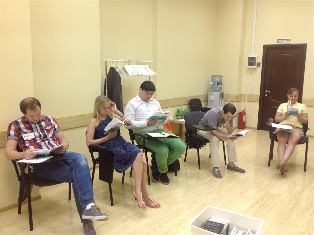 Наши тренинги проходят в уютном зале в центре Москвы. Полный курс «Эффективное чтение. Интенсив» включает два занятия в субботу и воскресенье с 10:00 до 19:00. В перерывах – кофе, бутерброды и обед.